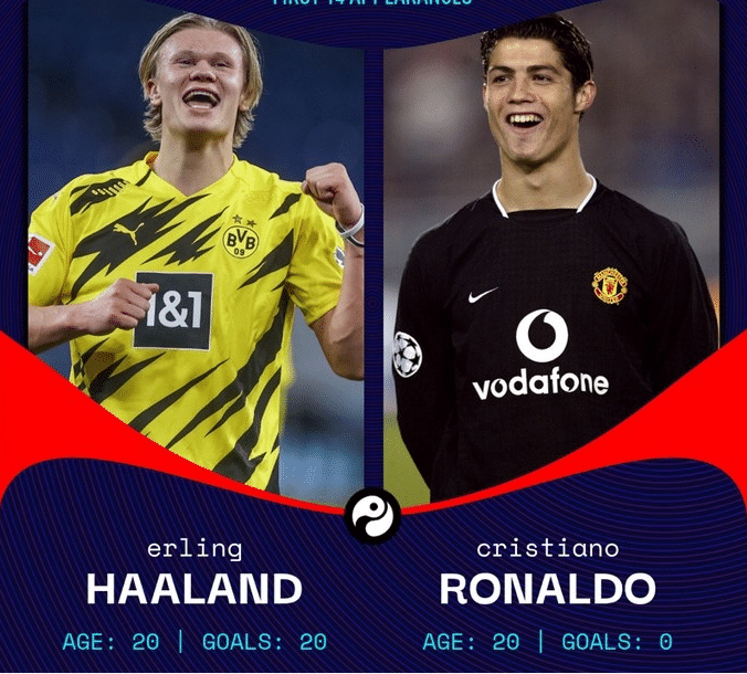 当然,现在表现出色不算什么,需要有持续性和稳定性才行。梅西和C罗欧冠前14场比赛的表现都非常一般,但是现在他们是欧洲赛场上表现最好的球员,而C罗更是欧冠历史射手王。就是不知道哈兰德能否继续这样的表现,在未来的比赛中超越C罗呢?从哈兰德的表现和年龄来看,他有这样的实力,就看他能否有C罗这么长的巅峰期了!