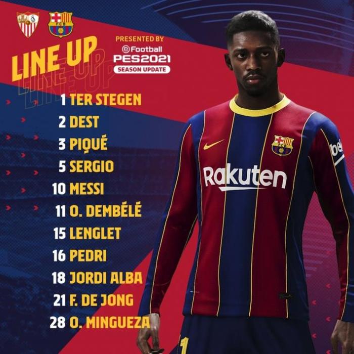 巴萨vs塞维利亚首发出炉: 梅西领衔, 登贝莱首发