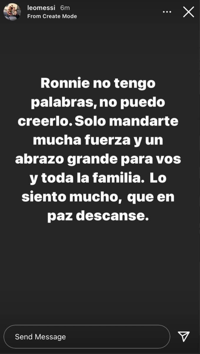 梅西写道:“罗尼,我现在说不出话来,我不敢相信这件事,只希望给你和你的家人送上一个大大的拥抱,并给你们传递力量。”