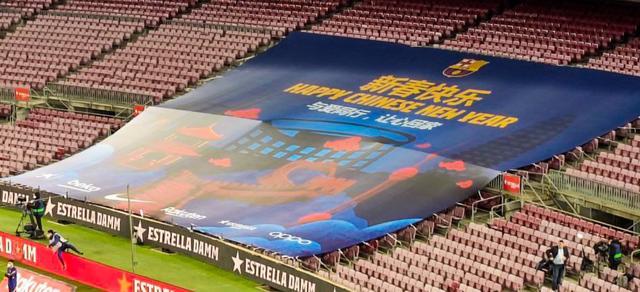 为庆祝新春佳节,巴萨在今天凌晨5-1大胜阿拉维斯的比赛中穿上了中文球衣,看台上的巨型横幅则写着“新春快乐,与爱同行,让心回家”的字样。