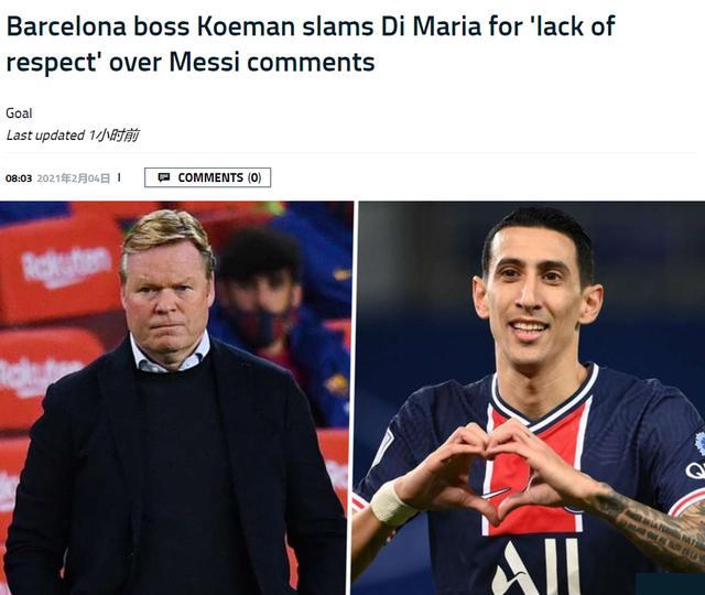 360直播吧2月04日讯 据进球网报道,巴萨主帅科曼今天怒怼了迪马利亚等巴黎球星,他表示这些球员不断在媒体上谈论梅西的转会传闻,是对巴萨缺乏尊重。