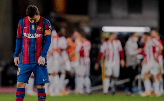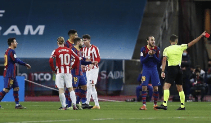 来源:360直播吧01-18 11:53360直播吧1月18日讯 今天对于巴萨的球迷们来说心情一定很糟糕,主队在西班牙超级杯决赛中2-3输给毕尔巴鄂竞技,无缘冠军,“大热必死”这样的言论在巴萨身上得到了佐证。比赛进行到最后时刻,梅西挥拳动作击倒比利亚利夫雷,被直接出示红牌罚下,这也是梅西在巴萨职业生涯的首张直接钟红牌。球队丢冠+梅西染红,这样的消息确实不能令巴萨的球迷们感到满意。