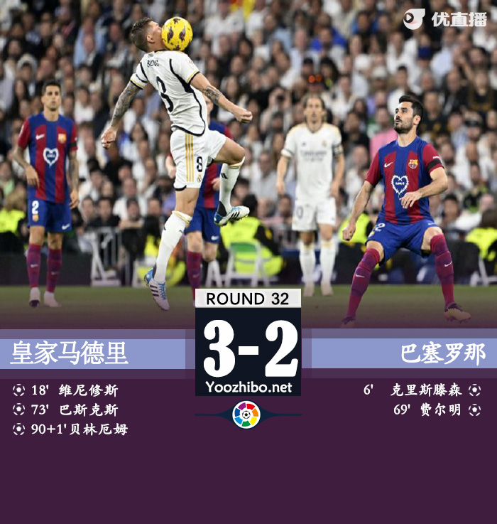 皇马3-2巴萨 贝林厄姆绝杀卢宁救险引门线悬案