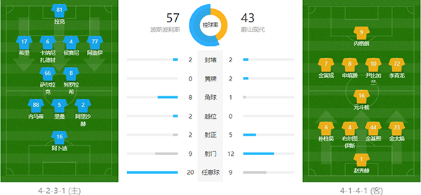 波斯波利斯出场阵容:81-拉克、2-阿里沙(90’23-绍贾伊)、4-侯赛尼、5-雷桑、6-卡纳尼、8-努罗拉希、16-卡拉、17-希里(74’ 36-拉梅扎尼)、66-萨尔拉克、77-阿格黑、88-内马蒂