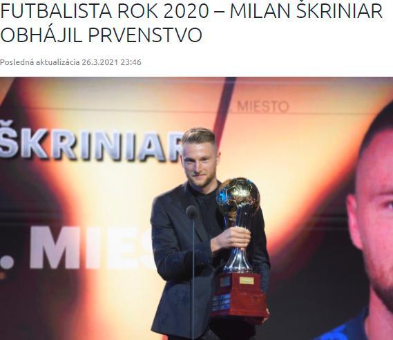 360直播吧讯北京时间3月27日,斯洛伐克足协官方宣布,国米球员什克里尼亚尔当选斯洛伐克2020年度最佳球员。