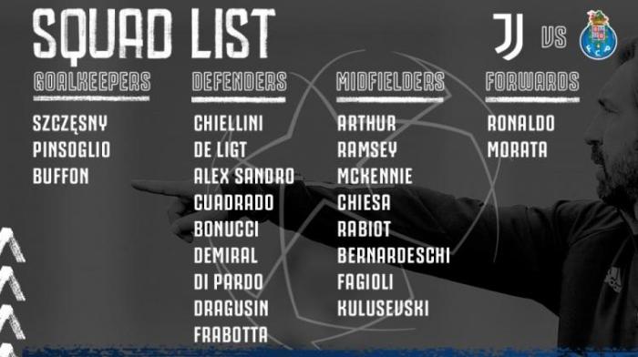 360直播吧讯 3月9日 尤文欧冠战波尔图大名单:C罗领衔,基耶利尼、德里赫特入选,拉姆塞、莫拉塔在列,达尼洛停赛,迪巴拉也继续缺席。