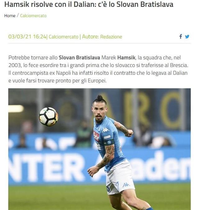迪马济奥表示,哈姆西克有望重返斯洛伐克国内俱乐部布拉迪斯拉发,他希望为即将到来的欧洲杯做准备。双方将尽快会面以求达成协议,签订三个月的短合同,之后再评估未来。