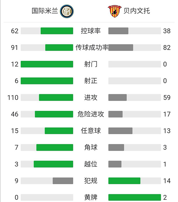 第6分钟,国米第1球!因普罗塔乌龙!禁区右下定位球埃里克森斜传,门前因普罗塔忙中出错送大礼!国米1-0贝内文托!