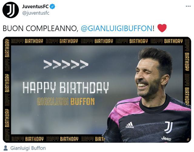 360直播吧1月28日讯 今天,尤文图斯门将布冯迎来了自己的43岁生日,尤文官推也在赛后发文祝贺这位传奇球星生日快乐。
