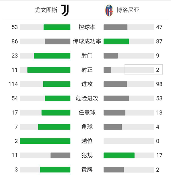 尤文图斯2-0博洛尼亚 麦肯尼头槌C罗献助攻