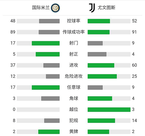 最终,国米主场2-0击败尤文,多赛一场的情况下积分追平榜首的米兰继续位居次席。