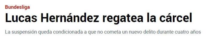 《马卡报》等西媒表示,西班牙法院已经对卢卡斯提出的上诉做出了判决,他无需入狱服刑,只需支付9.6万欧元的罚款,并且需保证4年内不再犯下新罪。