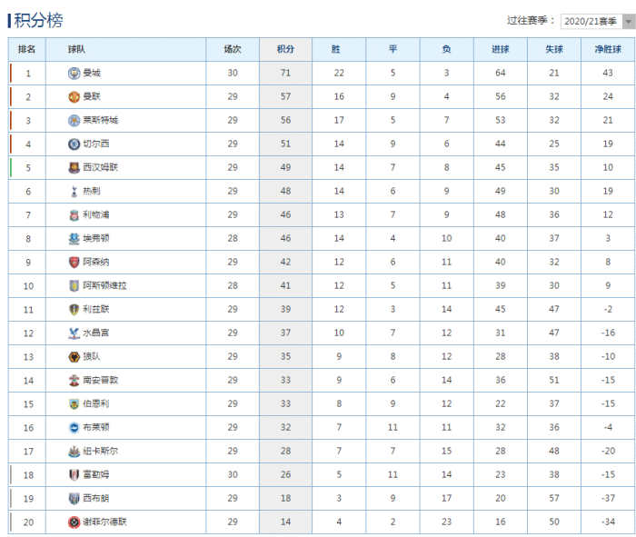 积分英超:热刺重回争四行列!纽卡或有降级风险!