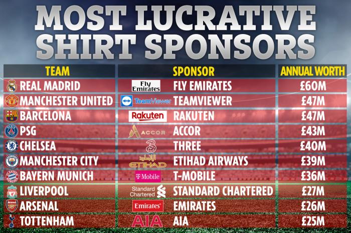 据信,这与巴萨与乐天达成的5500万欧元的球衣赞助合同相似,相当于每年4700万。这在国际足坛可以排名第二,落后于皇马从阿联酋航空每年得到6000万的赞助合同。