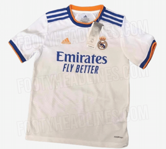 360直播吧3月15日讯著名足球装备网站FootyHeadlines日前披露了皇马新赛季的主场球衣谍照,这套球衣采用白蓝橙色的搭配,获得了不少好评。