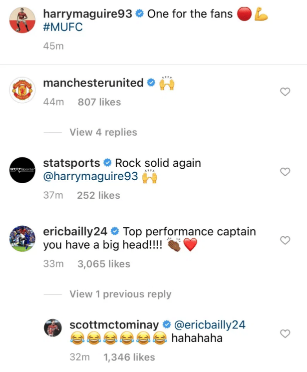 对于曼联队长的言辞,队友的反应是,大加称赞,顺带无情嘲讽。中卫搭档埃里克·巴伊就表扬了马奎尔对曼城的表现,但同时取笑了他的大脑袋。