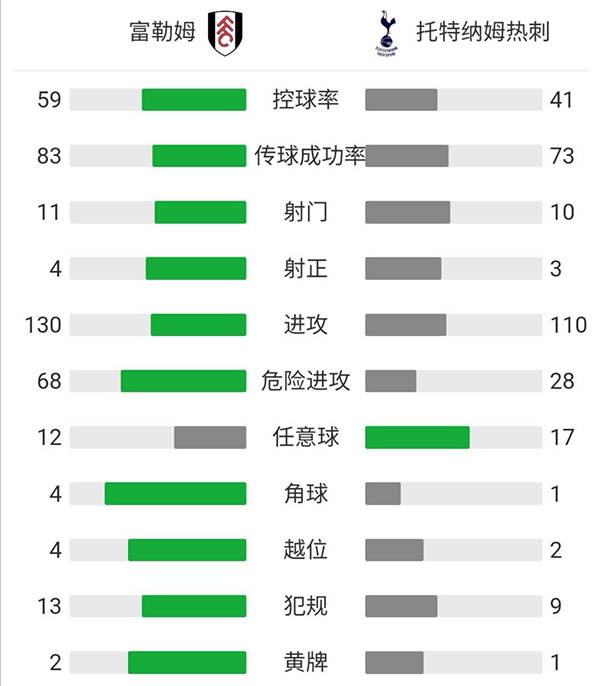 最终全场比赛结束,热刺1-0客胜富勒姆。