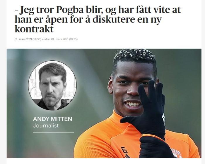 而曼联跟队记者安迪·米滕则告诉挪威媒体「United.No」,博格巴对留在曼联持开放态度,并且愿意开启新合同谈判。目前,博格巴的周薪为29万英镑,收入排名全队第二。如果他续约留下,很可能超越德赫亚成为队中顶薪球员。