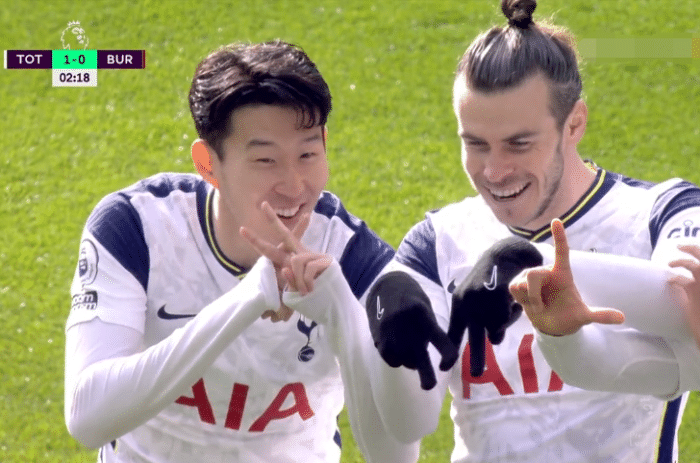 上半场的比赛开始后,热刺取得了梦幻开局,孙兴慜送出一脚斜传球,贝尔抢点轻松破门,热刺1:0领先伯恩利,从比赛开始到进球只用了68秒的时间,68秒是伯恩利队在英超联赛中的最快丢球纪录,贝尔最近的状态堪称神勇,近4场比赛他轰进了3球,并贡献了2次助攻。在进球后,贝尔与孙兴慜也是做出了比较特殊的庆祝动作。比赛第9分钟小卢斯上演人球分过,但是遗憾的是一脚射门太正被门将没收。比赛进行到第14分钟的时候,贝尔送出一脚精准的长传球,凯恩小角度爆射破门,14分钟的时间,热刺2:0领先伯恩利。