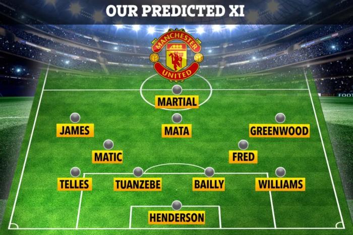 「阵容或多或少都跟对纽卡斯尔时一样,」索帅补充道,「汉尼拔(梅杰布里)因伤将缺阵一个月,阿马德(迪亚洛)和肖拉(肖泰尔)当然会参赛,他们在大名单中,但我不会告诉你们是否会让他们先发。」索帅也许忘记了,上周末自己已经公开表示不会让小将进入首发名单,英媒也不看好他改变主意。《太阳报》预测,马夏尔会得到机会,担任本场首发中锋,马塔、丹尼尔·詹姆斯和梅森·格林伍德也会获得先发机会。曼联后防也将有巨大的调整,马奎尔或将得到难得的休息机会,而门将迪恩·亨德森也可以上阵。亨德森上一次在英超登场已经是去年12月17日,传闻他下赛季可能要求离队。索帅表示:「我说过很多次,任何球员都需要让主帅满意,才能进入阵容。老实说,有两名出色的门将,这不是令人痛苦的头疼。迪恩(亨德森)这个赛季都在成熟,我认为上轮对皇家社会是他表现最稳的一次,这让我对他非常有信心。」在后腰位置,曼联则没有其他选择,只剩弗雷德和马蒂奇,19岁的北爱尔兰国脚加尔布雷斯将充当替补。