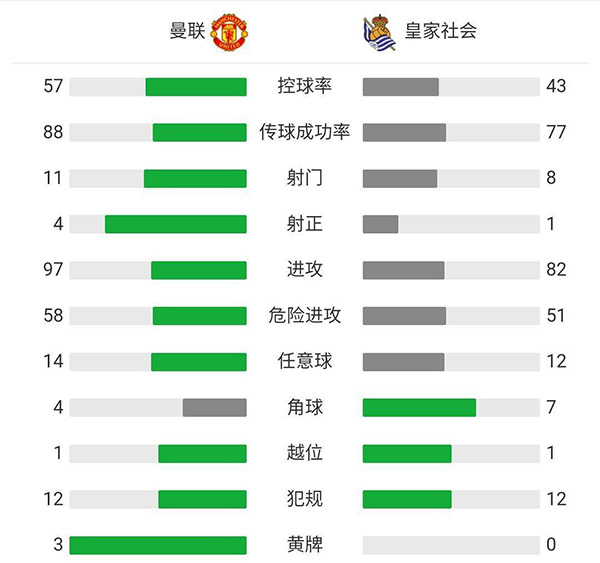 全场比赛结束,曼联0-0战平皇家社会,两回合4-0晋级。
