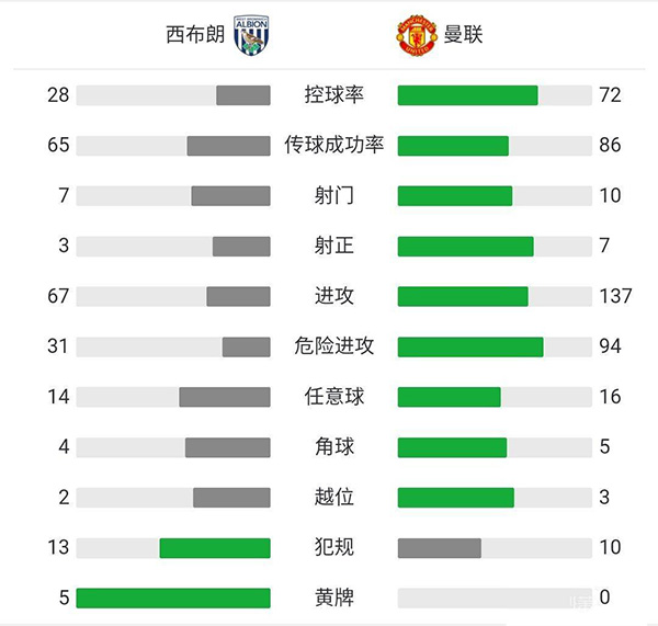 全场比赛结束,曼联1-1西布朗。