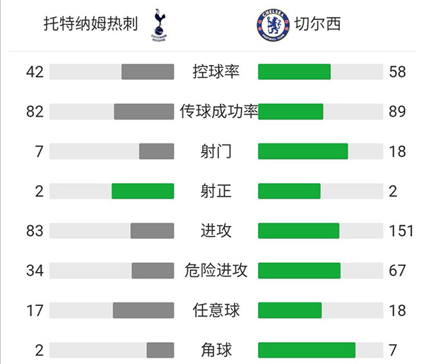 最终,热刺0-1不敌切尔西。