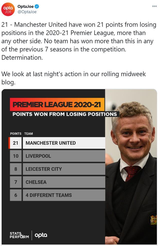 360直播吧1月22日讯 据OPTA数据统计,本赛季曼联在英超联赛中率先丢球的情况下拿到了21分,遥遥领先于其他球队。