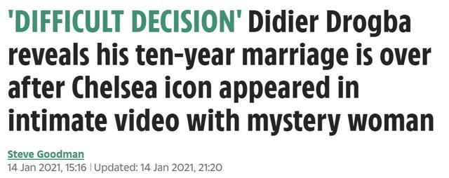 360直播吧1月15日讯 切尔西传奇球星德罗巴最近宣布他已经结束了自己20多年的婚姻,《太阳报》表示这位科特迪瓦前锋离婚是因为他出轨了。