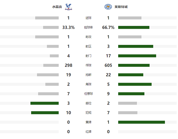 英超简报:水晶宫1-1莱斯特城 伊希纳乔失点扎哈破门