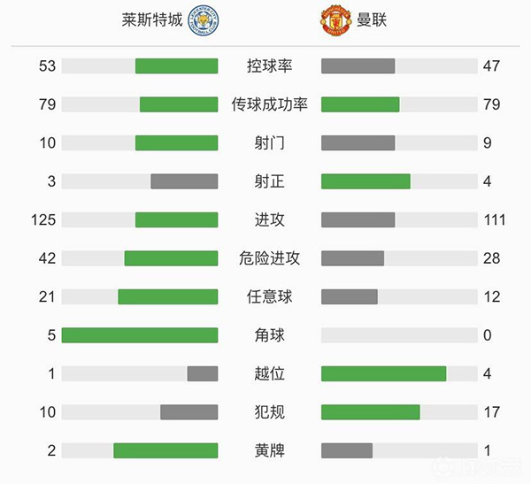 第31分钟,B费后场失误被断球,巴恩斯禁区外围一脚爆射,德赫亚扑救不及,莱斯特城扳平比分,1-1!