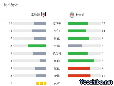 第53分钟,伊沃比后场传球失误,埃利奥特断球后送出直塞,赫拉芬贝赫调整后一脚劲射破门,利物浦2-1富勒姆。