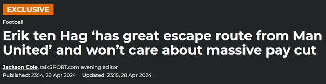 在曼联,滕哈格不仅引援选择和执教成绩遭到批评,还将因为无缘欧冠被降薪。他的900万英镑年薪将降低到700万以下。尽管如此,阿贾克斯的收入仍然比不上这一数额,然而,范德克兰认为金钱不是「富二代」滕哈格执教生涯的目标。