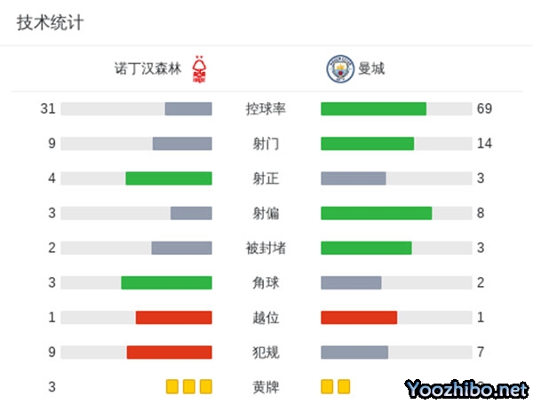 第82分钟,怀特中圈斜长传送到前场右侧,奥多伊得球内切小角度爆射打近角得手,诺丁汉森林1-0曼城。