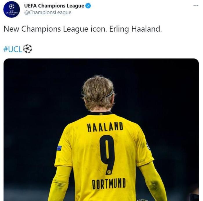 哈兰德出色的表现也赢得了官方的认可,欧冠官推称他为欧冠新偶像。