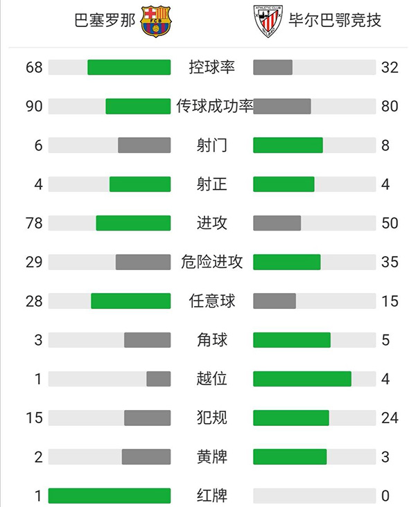 全场战罢,最终,毕尔巴鄂3-2巴塞罗那。