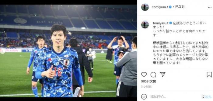 大度! 富安健洋: 对手不是故意肘击, 已收到道歉