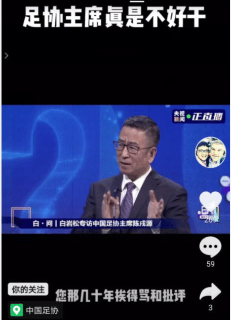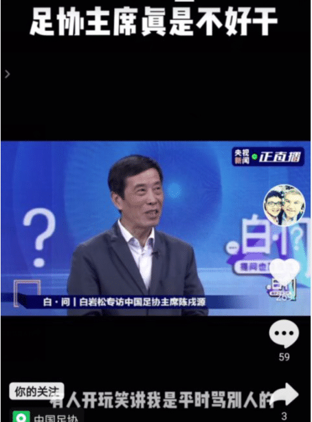 足协主席陈戌源:之前我骂别人,现在别人骂我!