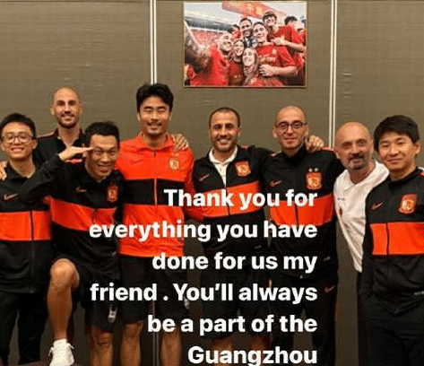 当时朴志洙离队的时候,卡纳瓦罗也送上了祝福:“谢谢你为我们所做的一切,我的朋友。你将永远是广州恒大大家庭的一员。希望你能平安返回韩国,祝你一切顺利。”