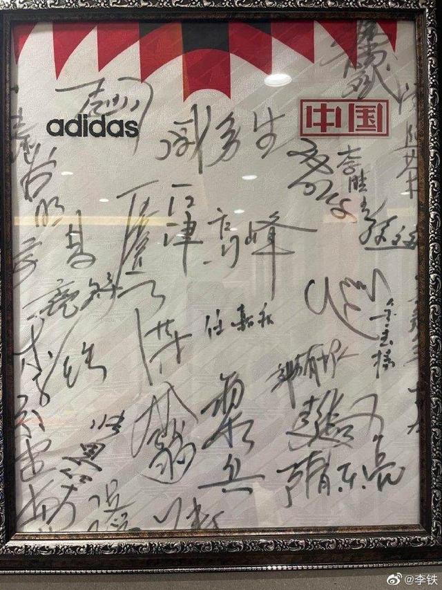 李铁写道:“这是我保留的最早的一件国家队签名球衣。1997年,我刚进国家队,迟导是教练。请大家记住迟导的笑容!记住迟导是个伟大的球员!也是个伟大的教练!迟导一路走好。”