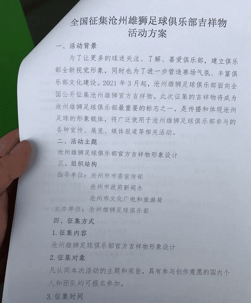 信息量太大!沧州雄狮公开征集吉祥物和队歌,“征战中超”吸睛