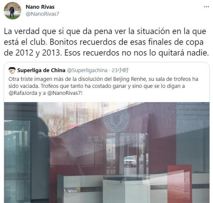 360直播吧3月10日讯 此前,有媒体报道,北京人和俱乐部将在本月解散,前人和外援纳诺-雷瓦斯在个人社交媒体上表达了惋惜。
