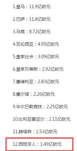 六年的时间,陈雁升赚到了多少钱呢?根据最新的球队市值排行榜显示,如今的西班牙人市值达到了1.49亿欧元,排在西班牙所有俱乐部的的第12位。6年下来,西班牙人并没有太大的投入,所以在投入和收入方面大概率能够做到持平,所以陈雁升赚到的更多是市值的提升。如果按照市值计算的话,陈雁升六年的时间赚到了将近4000万欧元的收入,如果目前处于西乙第二的西班牙人下赛季能够重返西甲的话,陈雁升能够赚到的将会更多。