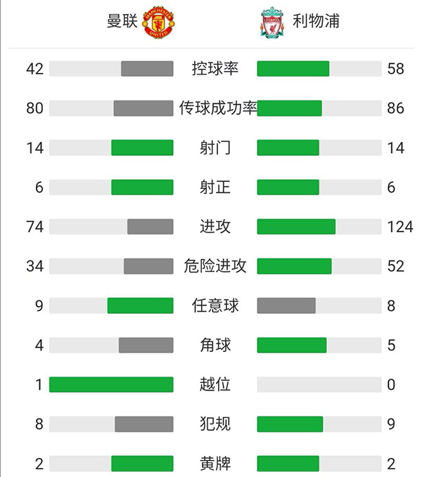 第26分钟,拉什福德中圈附近一脚斜长传,米尔纳中路冒顶,格林伍德插上一脚低射将球打进,曼联1-1利物浦。
