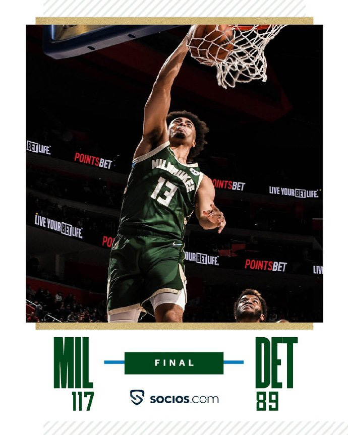 360直播吧11月3日讯 NBA常规赛继续进行,活塞主场迎战雄鹿,活塞打了6场只有康宁汉姆首秀那场取得胜利,排名东部垫底;而雄鹿最近由于大洛和霍勒迪的伤停经历3连败,排名也掉到东部第11。开局活塞格兰特率先找到外线手感,但字母哥马上带领雄鹿回应一波小高潮并取得领先,后半节双方命中率下降后,雄鹿还是依靠外线领先了7分,次节开局活塞依靠替补将分差追近至2分,但康诺顿站出来连续外线扔进三分为雄鹿止血,末段字母哥又连续助攻队友一波小高潮领先到18分。第三节,字母哥里突外投阻挡不了带领雄鹿将分差拉开至20分,活塞外线不开追分始终不解渴,末段沃拉也连续突内线上篮,雄鹿将分差拉开至28分,末节字母哥上来就带领雄鹿将分差拉开至30分以上,随后比赛失去悬念成为练兵时间,最终雄鹿大胜活塞,终止自己的3连败。