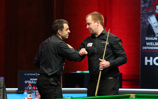 第13局比赛中,布朗上手围球连得26分后失误,随后奥沙利文继续状态低迷拿下17分后切底袋黑球失误停袋口,此后布朗打进红球后做防守,奥沙利文解球罚分再漏球,布朗随后零敲碎打超分胜出7-6反超。第14局中奥沙利文长台上手进攻,围球连得64分超分后咖啡球不进,布朗放弃这局总分来到7-7平。