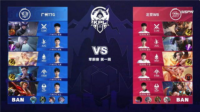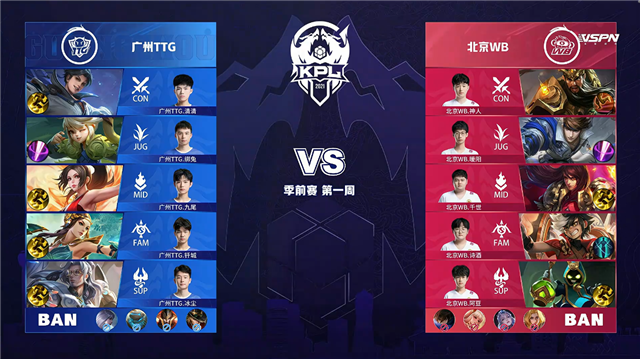 双方平稳开局,1分11秒北京WB拿下中路河道之灵。2分21秒北京WB拿下暴君。6分01秒广州TT摧毁敌方上路外塔,北京WB摧毁敌方下路外塔。6分53秒广州TTG拿下暴君。7分04秒北京WB拿下主宰。7分26秒广州TTG摧毁敌方下路外塔,北京WB摧毁敌方上路外塔。2分43秒中路团战广州TTG打出0换2。8分15秒广州TTG摧毁敌方中路外塔。9分58秒广州TTG野区击杀太乙真人。10分26秒广州TTG拿下暗影暴君。12分14秒广州TTG摧毁敌方中路二塔。12分57秒广州TTG拿下暗影主宰。14分28秒广州TTG中路打出1换3并摧毁敌方中路高地塔。15分02秒广州TTG团灭对手摧毁水晶拿下比赛。