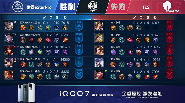 双方平稳开局,TES选择换线让猪八戒抢中。1分08秒中路团战TES击杀周瑜拿到一血。2分21秒TES拿下暴君。4分08秒武汉ES上路击杀镜。4分58秒武汉ES野区击杀镜。5分47秒TES拿下主宰。6分29秒武汉ES拿下暴君。6分53秒TES中路击杀鲁班大师。7分10秒中路团战TES打出1换2。9分02秒武汉ES中路击杀张飞。9分19秒武汉ES摧毁敌方中路外塔。9分42秒武汉ES摧毁敌方下路二塔。10分25秒双方上路1换1。11分04秒武汉ES拿下暗影主宰。11分53秒武汉ES拿下暗影暴君。12分46秒上路团战武汉ES打出0换2并摧毁敌方上路二塔。13分20秒武汉ES摧毁敌方中路二塔。13分28秒武汉ES中路击杀张飞并摧毁中路高地塔。15分11秒武汉ES拿下暗影主宰。16分14秒暴君处团战武汉ES打出1换5。16分51秒武汉ES摧毁敌方水晶拿下比赛。
