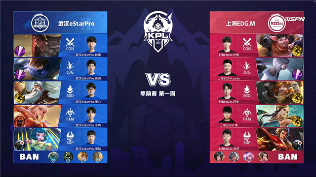 360直播吧 3月12日2021KPL春季赛季前赛第一周第二日比赛,由武汉eStarPro对阵上海EDG.M,以下是本场比赛快讯。